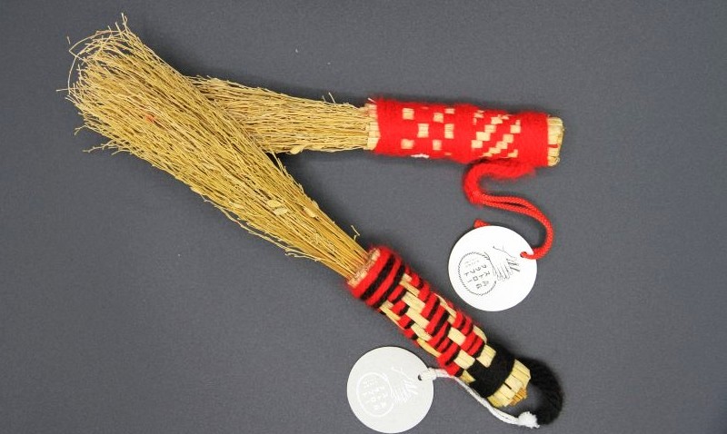 地元産の「わら」を材料に約20cmの長さの小さな箒(ほうき)を作ります。この地域では「実子箒(みごぼうき)」と言っています。身近なちょっとした場所の清掃に役立っています。最近はわらに親しむ機会が少なくなっていますが、昔から鳥居や玄関の注連飾りをはじめ、米俵・ぞうりなどわらを材料に数多くの生活用品が作られてきています。