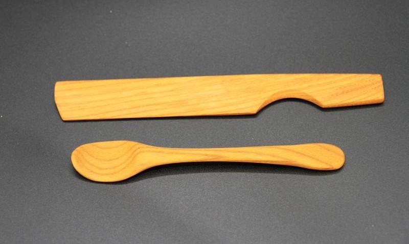 粗削りした木製のナイフとスプーンを、サンドペーパーで整形しながら削り、最後にミツロウワックスを塗布して仕上げます。作品を持って帰り実際に使ってみて完成となります。現代はお金を出せば何でも手に入る時代です。その様な時に自分で手をかけ作り上げたものに愛着を感じると思います。