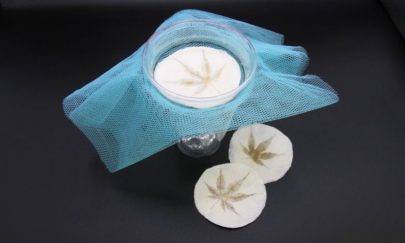 この県北地区では、歴史的に手漉きによる和紙作りが盛んに行われていました。その方法は、漉き舟に紙液を溶かし、桁と簾によって紙液をすくうというものです。体験学習では、身近にあるコップを利用した簡易的な紙漉きの方法を取り入れています。和紙の中に押し花を漉き込んだしおりやコースターなど個性豊かな作品を作っています。