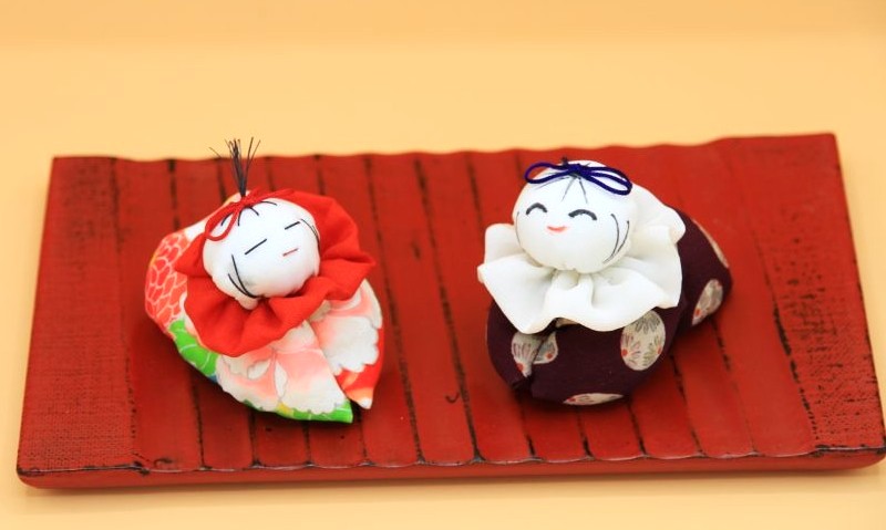 吊しびな(吊し飾り)は、女の子の健やかな成長や幸せを願う風習で、江戸時代の後期に始まったといわれています。体験学習では、吊し飾りに付ける「はいはい赤ちゃん(はいはいしている赤ちゃん)」を作っています。布で体を作り、綿と洗濯ばさみを入れて胴を作り、胴にフリルと顔を付けて作ります。飾り紐に挟んで付けることができます。
