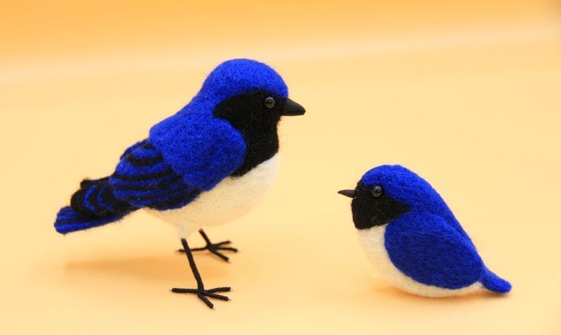 羊毛は、ニードルフェルトとも呼ばれる手芸で、羊の毛を専用の針でチクチク刺しながらフェルト化し造形します。あまり大きな作品には向いておらず10㎝くらいの大きさのものが作りやすいです。体験学習では野鳥をモチーフとしたブローチを作成しています。短い時間での作成になっていますが、毎回個性的で素敵な作品が作られています。