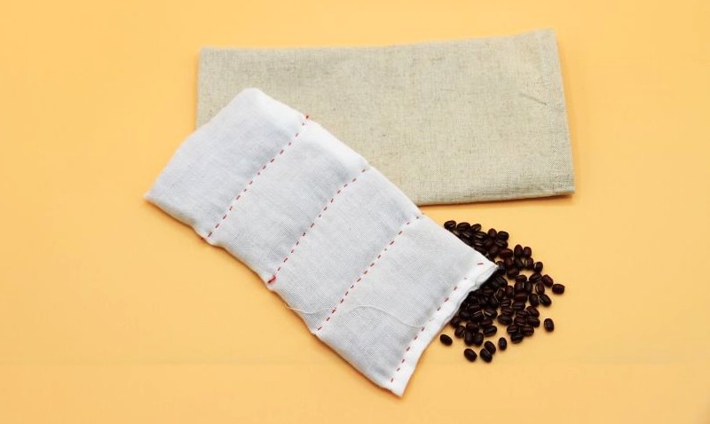目を癒すお手伝いをするのがアイピローです。綿・晒・小豆といった身近な材料を使い、針と糸で縫製して作る自分だけの作品です。光を遮断し、小豆の程良い重みで目を覆うことにより目を休ませる事が出来ます。比較的短時間でできることから、自分用の他に、家族用にも作っている生徒の姿も見受けられます。