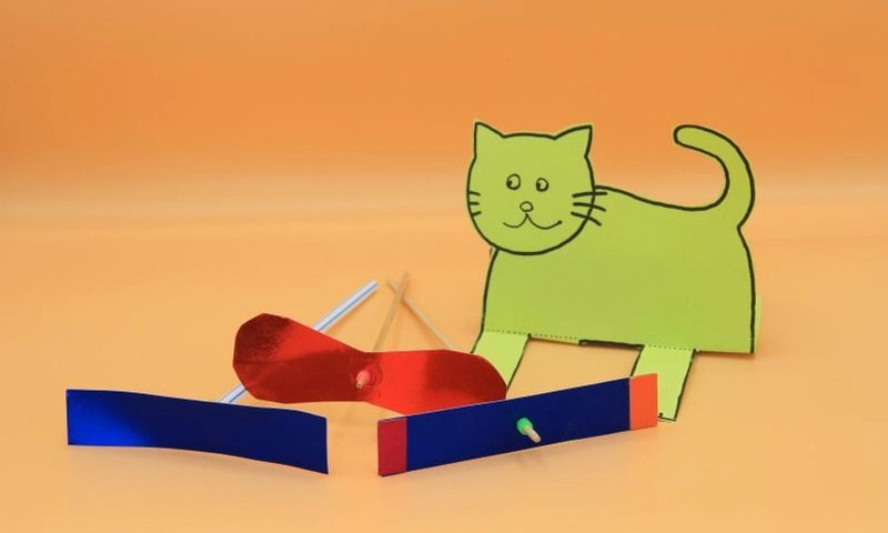 身近な材料でオモチャを作り、そのオモチャの特性や動く原理などを科学的に考察できることを目的としています。たとえば、工作用紙と竹串を使って紙トンボを作ります。羽根となる紙の大きさや重りのつけ方、羽根の曲げ方などを工夫することによって飛び方の違いが分かり、よく飛ぶための条件は何かなどいろいろ考えることができます。